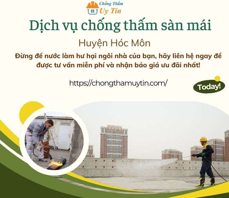 Đội chống thấm uy tín chuyên Chống thấm sàn mái tại Huyện Hóc Môn chống thấm hiệu quả, đảm bảo chất lượng và độ bền cao.