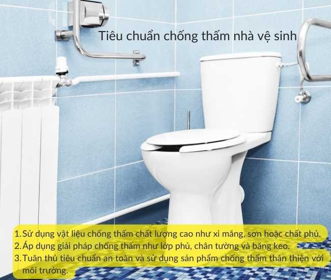 Các tiêu chuẩn chống thấm nhà vệ sinh bao gồm việc sử dụng các vật liệu chống thấm chất lượng cao như xi măng chống thấm, sơn chống thấm hoặc các loại chất