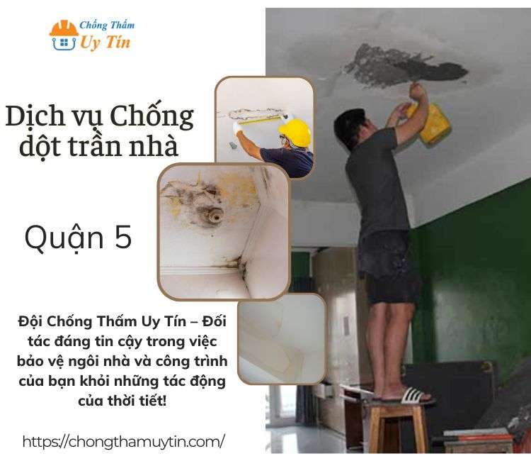 Quận 5, khu vực có nhiều ngôi nhà phố, căn hộ và công trình kinh doanh, là nơi thường xuyên đối mặt với vấn đề thấm dột trần nhà do tác động của mưa gió và sự xuống cấp của vật liệu xây dựng. Đội Chống Thấm Uy Tín cung cấp dịch vụ chống dột trần nhà chuyên nghiệp tại Quận 5, giúp bạn giải quyết triệt để tình trạng thấm nước và đảm bảo sự bền bỉ cho công trình.