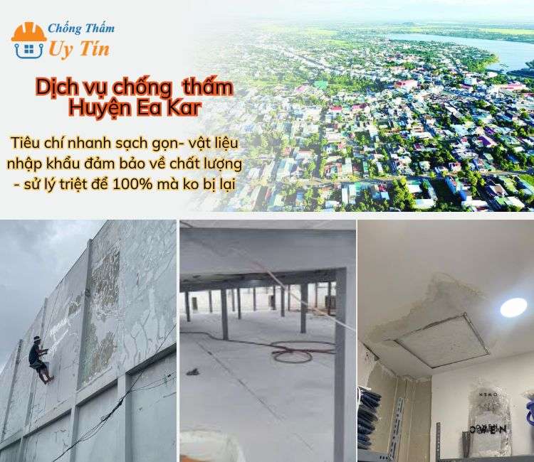 Để khắc phục vấn đề này, đội ngũ Chống Thấm Uy Tín cung cấp dịch vụ chống thấm chuyên nghiệp, hiệu quả tại Huyện Ea Kar, bao gồm thị trấn Ea Kar, thị trấn Ea Knốp và các xã như Cư Elang, Cư Huê, Cư Ni, Ea Đar, Ea Kmút, Ea Ô, Ea Păl, Ea Sar, Ea Sô, Ea Tih, Ea Týh, Xuân Phú.